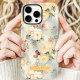 This beautiful phone case showcases a delicate design of yellow and peach roses intertwined with soft greenery on a subtle beige background. The personalized nameplate in warm orange adds a custom and elegant touch, perfect for those who adore timeless floral patterns and sophisticated accessories.