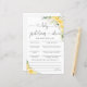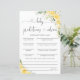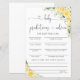 Elegant Yellow Baby Shower Predictions Card is a sweet and interactive keepsake designed with soft yellow tones that bring warmth, joy, and charm to your baby shower celebration. This beautifully styled card invites guests to share their fun predictions about the baby’s arrival—such as birth date, weight, eye color, and more—creating a meaningful memory for the parents-to-be. Perfect for spring, garden, neutral, or modern baby shower themes, it coordinates seamlessly with matching yellow shower stationery for a cohesive and polished event.