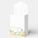 Delicate watercolor yellow flowers decorate this lovely spring wedding favor box. The garden wedding box is accented with a gentle sage green rectangle border and botanical leaves underneath the elegant sunny peonies. Floral and light, perfect for an outdoor ceremony.