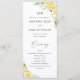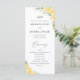 This Elegant Yellow Floral Wedding Program template adds a bright and sophisticated touch to your ceremony, beautifully designed with soft yellow florals and delicate greenery for a fresh and romantic aesthetic. The warm yellow tones paired with subtle botanical accents create a welcoming and elegant look, guiding your guests through each moment of your special day. Featuring a clean and well-organized layout, this fully editable template allows you to easily customize the order of events, names, and details to match your wedding theme. Ideal for print use, it enhances your ceremony with both style and clarity.