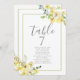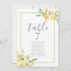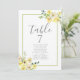 Delicate watercolor yellow flowers decorate this lovely summer afternoon wedding table number with seating chart card. The garden wedding decor is accented with a gentle sage green rectangle border and botanical leaves underneath the elegant sunny peonies. Floral and light, perfect for an outdoor ceremony.