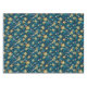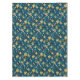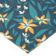 Pattern of yellow flowers with white centers and dark green leaves on a deep blue background. The design is vibrant and symmetrical.