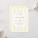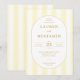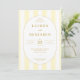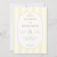 This elegant wedding invitation features a classic vertical layout with an oval frame bordered by thin gold lines, set against alternating pale yellow and white stripes. The design employs a refined color palette of soft yellows, whites, and golds, creating a warm and inviting atmosphere. With clean digital print and precise serif typography, the invitation exudes sophistication and formality, perfect for celebrating a significant event. Its minimalistic approach focuses on structured composition and balance, making it ideal for those seeking simplicity paired with elegance.