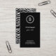 This elegant design with black background (front and back) and white text features a white circle at the top for your initial/monogram. Customize to add/remove fields or adjust alignment of monogram as needed. Dark background color can be changed as desired. Zebra print on back