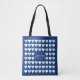 A pattern of white love hearts on a blue tote... personalized with your own initials and name.