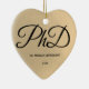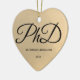 A heart-shaped PhD graduation ornament with a gold tone (non-foil) and black color scheme. It shows the degree, name, and year. Simply customize this ornament, add it to your cart, and have a keepsake of this major achievement.