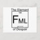 Science has isolated a new chemical in the periodic table - the element of despair, abbreviated as FML. This extremely volatile substance causes bad hair days, fights, irony, feelings of helplessness, and exasperated exclamations of "F*ck my life!." Slang chemistry for the masses - a perfect gift for a bad day!