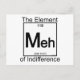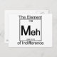 Science has isolated a new chemical in the periodic table - the element of indifference, abbreviated as MEH. This common substance shows up as a verbal shrug of the shoulders when you just don't care. Slang chemistry for the masses – a perfect gift for... whatever.