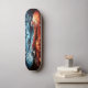 "Elemental Clash" is a skateboard deck graphic that captures the mesmerizing dance between fire and ice. This design features a dynamic interplay of fierce flames and serene frost, with each element retaining its own essence while seamlessly merging into the other. The vibrant oranges and reds of the fire contrast with the tranquil blues and whites of the ice, creating a visual representation of the unity and struggle between opposites.