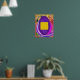 Two symbols for the element of Ether and Earth plus bright colorful patterns. Yellow square and purple egg.