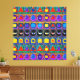 Many symbols for the elements and their combinations in bright colorful patterns.