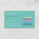 Some light teal professionally designed business cards featuring pastel ink pens for elementary school substitute teachers . Use the provided template to fill them with your own info . They're also available in light orange , black or white .