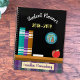 A basic planner for elementary school students . The front has a faux chalkboard look . The back has a purple plaid design . This was designed for schools who wants all their students to have a similar planner . Customize it with the school year , the school name and your district logo .
