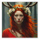 Elen of the Ways is shown with vibrant red hair, symbolizing her deep connection to the natural world and its fiery, untamed spirit. Her hair flows freely, embodying the wildness of nature and her role as its guardian.
