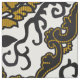 This particular version is a 'mock velvet and golden design'; it imitates the velvet (with tiny 'hairs' in the print) as well as the golden parts of the fabric with rows of golden loops.