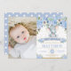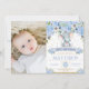 Elephant 1st Birthday Blue Floral Boy Photo Invitation