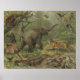 Elephant and Animal Friends is a gorgeous lithograph that was digitally restored from an antique encyclopedia. The scene depicted is one set in a jungle with a tiger roaring at an elephant who seems to be responding in turn and a crocodile lounges by the water at their feet. Beautiful movement is achieved through flying birds and bats, as well as monkey's swinging through branches and vines.