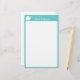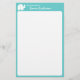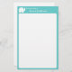 "From the desk of" personalized stationery in aqua and white, decorated with a white elephant. Change background color as preferred.