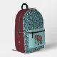Elephant and Deep Aqua Red Mandalas n Initials Printed Backpack