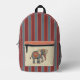 Elephant and Dusty Blue Red Stripes with Monogram Printed Backpack