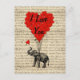 Funny cute vintage elephant animal illustration and romantic red valentines heart shaped balloons on an antique paper background with I love you text. Visit the VINTAGEPRINTS STORE for matching products and more vintage and retro inspired products.