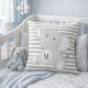 A lovely striped design, this pillow features a gray and white striped pillow with a gray elephant on top. The monogram design is on the elephants stomach. Perfect for a baby nursery. Purchase yours today!