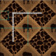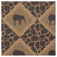 Alternating squares set on a diagonal of a deep chocolate brown elephant set in a medium-brown faux grassy texture diamond shape that is bordered in pattern of tall blades of grass. Alternating pattern with a dark-chocolate brown (almost black) and tan giraffe animal print background.