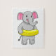 Elephant at Swimming with Lifebuoy Jigsaw Puzzle