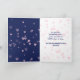 An adorable baby elephant with pink heart ears and a bow tie has red and pink hearts coming from his trunk. The white text on the large pink heart above him says "1st Valentine's Day". The images and text are placed on a navy blue background with soft pink floating hearts. The inside has a repeat of the floating hearts, with your custom text. Easy to customize, and perfect for baby's first Valentine's Day. *Thanks to Pretty Graphic Design for the images used in this design.