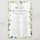 Elephant themed baby shower animal gestation game card features a watercolor elephant illustration and watercolor greenery eucalyptus garland and elegant handwritten style font.