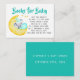 Cute and simple 'books for baby' insert card to enclose with your baby shower invitations. This gender neutral design features a watercolor illustration of an adorable baby elephant snuggled up on the moon and fast asleep under the stars. A lovely design that conjures up visions of cozy bedtime reading sessions. The title reads "Books for Baby" and the poem reads "Just one request, we hope it's not hard Please bring a book, instead of a card. By signing your name, we'll remember and share, your special gift, even when you're not there". The template is set up ready for you to personalize the bring a book request (on the back) with your name, event and date. Please browse our store for elephant baby shower invitations and gifts.