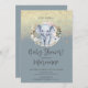Elephant Baby Shower Faux Gold Glitter Dusty Blue Invitation