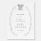 Welcome guests to the baby shower with this elephant themed sign, featuring dusty sage greenery and soft gray typography.