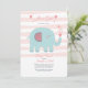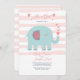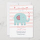 A sweet baby girl shower invitation with a pink and white stripe background and a teal elephant blowing hearts. (<a href="https://www.vecteezy.com/free-vector/february">February Vectors by Vecteezy</a>). <br/><br/>The card is easy to customize with your wording, font, font color and choice of paper types.<br/><br/>Not exactly what you're looking for? All our products can be custom designed to meet your needs at no extra charge.<br/><br/>Simply contact us at heartfelthelper@gmail.com<br/><br/>Coordinating products available: