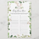Elephant themed baby shower name race game card features a watercolor elephant illustration and watercolor greenery eucalyptus garland and elegant handwritten style font.