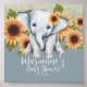Elephant Baby Shower Sunflower Glitter Dusty Blue Poster