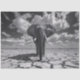This striking black and white digital artwork features a majestic elephant walking across dry, cracked earth, capturing a powerful and dramatic scene. The realistic details and high-contrast design give the piece a photographic quality, emphasizing the strength and resilience of the elephant in a drought-stricken landscape.