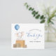 Thank your guests for celebrating the mama to be! This thank you card features a watercolor elephant with a blue balloon sitting on a pile of shipping boxes. Matches our elephant baby shower by mail collection. Personalize with your information or click "Click to customize further" to edit font styles, size and colors.