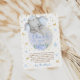 Watercolor Soft Blue Gold Elephant Baby Boy Shower thank you card with text template. Cute sleepy elephant on the moon, with glitter details around, like stars and gold dots, shimmer butterflies, elegant script and watercolor blue flowers. This card is a mix of boho, modern, and elegant styles. Don't forget to discover the full collection.