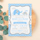 Plain white envelopes are included with paper invitations and will come to fit the invitation size you select. If you don’t need the envelopes, you may choose to not receive them by selecting the dropdown below "Envelopes" and choosing "None." If you’d like to have a design on your envelopes, you can browse all of these available envelopes to find the design that complements your Elephant Blue Gray Baby Shower Invitations.