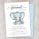 Elephant Blue Watercolor Baby Boy Shower Invitation