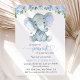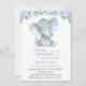 Elephant, Blue Watercolor Flowers, First Birthday Invitation