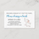 A great insert card to add with your baby shower invitations when requesting books in lieu of cards. These bring a book cards are easily customized with the text of your choice in the font style you prefer. Featuring an adorable elephant illustration and poem: "ONE SMALL REQUEST, WE HOPE NOT TOO HARD
