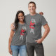 My 11 yo wore adult XL (5’7” 165#). The 8yo is small framed. She wore adult small and tied it in the back. Grandma wore adult large with long sleeve shirt underneath. Tall girl adult medium. Dark haired male adult large. Good quality dark Heather gray, Gildan brand shirt. -it was next up from basic choice and cost about $20 per shirt. Not too thick or thin. Washed and dried well, no major shrinkage. Not see-through. Can wear a bra under it fine. Screen print is just as shown and well done, front and back.