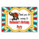 Personalized Circus theme, for all occasions. This elephant animal design is a great touch for the collector or lover of pachyderms. An indian elephant is adorned with a red cloth on his back, for the circus or other occasion, with red tassels and a decorative neck piece with a fun turquoise teal and red stripe background and circus lights around the perimeter. The has his trunk up for good luck. Design Copyright © CustomInvitesOnline.