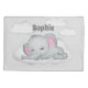 Sweet baby gender neutral elephant keepsake pillow case. Add name to personalize this cute pillow case. A little gray and pink eared sleeping elephant floating on a fluffy white cloud. So adorable. Perfect for boy or girl.