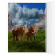 Pictured in a oil paint design are two Elephants in a big grassy meadow