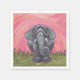 Animal Parade Elephant Disposable Napkins created are for the fun side of you featuring our original art of a cute African elephant character standing in the grass of the savanna with a textured pink sky and a playful wavy purple border painted by our talented children’s illustrator, Traci Van Wagoner. This cute pachyderm makes a great gift for anyone who loves elephants, African animals, safari animals, Africa elephants, pachyderms and fun animal art. Get one for yourself!
