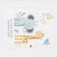Cute whimsical and adorable elephant giraffe and bird on this personalized birth stats baby blanket for the new baby boy. Add up to three lines of test at the bottom.