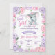 Elephant Girl Invitation rustic, purple pink